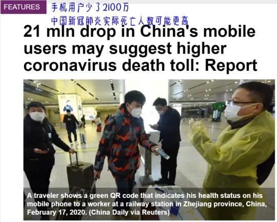然而,美國政府和媒體的“指責遊戲”依舊在上演。近日,又有媒體挂出聳人聽聞標題,“中國是不是隱瞞了實際的新冠死亡人數?中國的手機號減少了2100萬”,更是無稽之談。