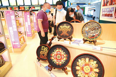 海口美蘭國際機場出發廳里,400余種海南特色旅遊商品向來往旅客集中展示和推廣。