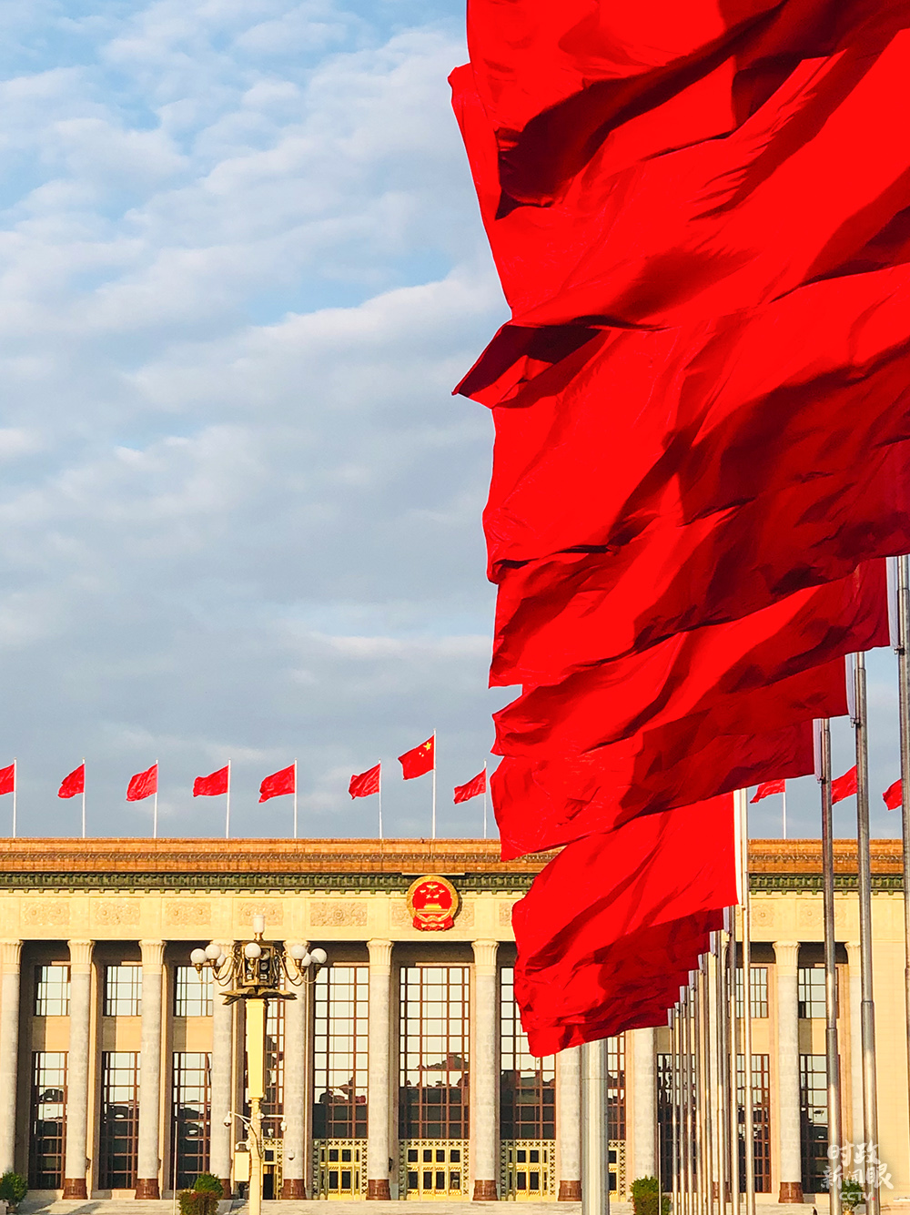 △人民大會堂前,紅旗招展(總臺央視記者王威拍攝)