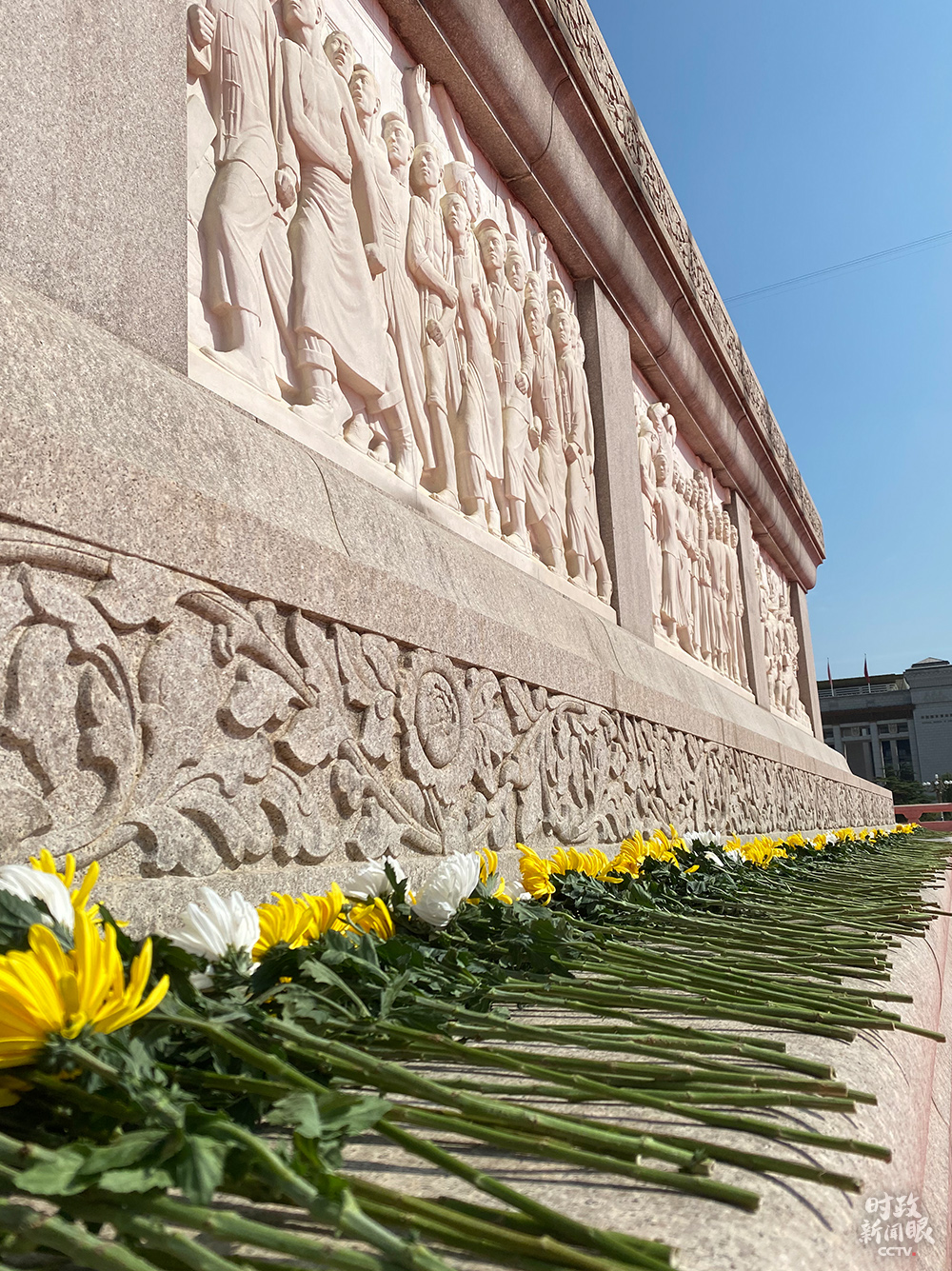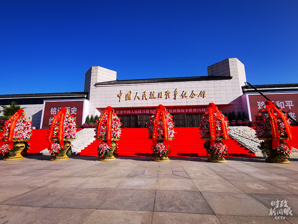 △當天陳列在中國人民抗日戰爭紀念館前的花籃(總臺央視記者荊偉拍攝)