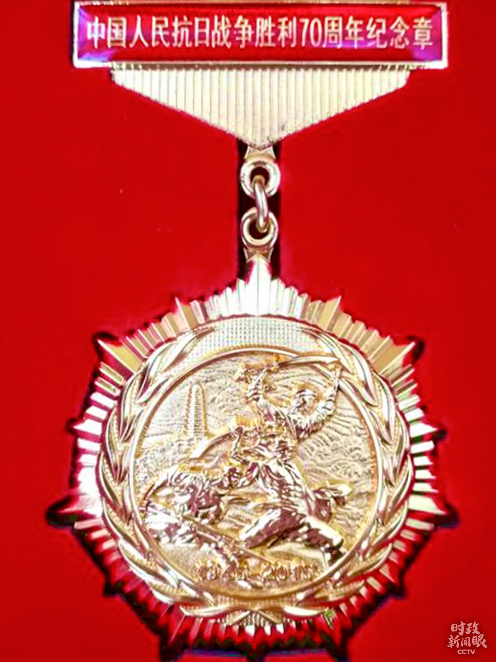 △中國人民抗日戰爭勝利70周年紀念章由抗日戰士浮雕、延安寶塔山、黃河、橄欖枝、光芒5大元素構成。