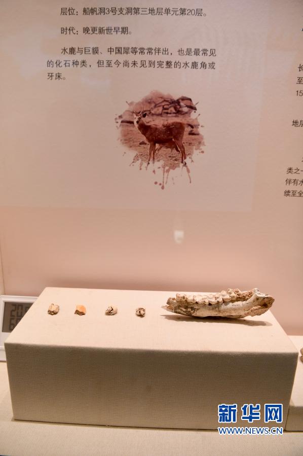這是位于福建省三明市三元區岩前鎮的萬壽岩遺址博物館內展出的動物牙齒化石(11月24日攝)。新華社記者 姜克紅 攝