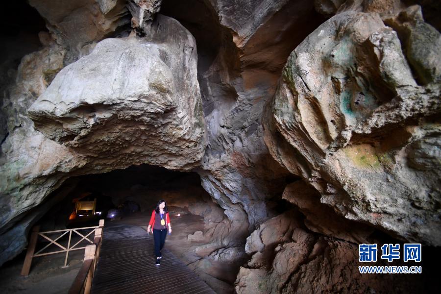 一名參觀者走出位于福建省三明市三元區岩前鎮的萬壽岩國家考古遺址公園船帆洞(11月24日攝)。新華社記者 姜克紅 攝