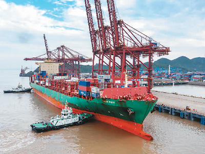 6月5日,“韋德印度(WIDE INDIA)”輪靠泊寧波舟山港金塘港區大浦口集裝箱碼頭,將在大浦口碼頭裝載1502標準箱,前往尼日利亞、多哥、貝寧、馬來西亞、新加坡等“一帶一路”沿線國家。