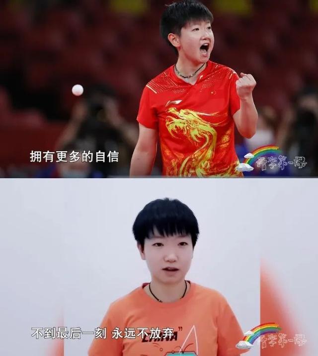 孫穎莎(東京奧運會乒乓球女子團體冠軍、東京奧運會乒乓球女單亞軍):新的學期到來,希望同學們能在擁有豐沛知識的同時,擁有更多的自信,不到最後一刻,永遠不放棄。