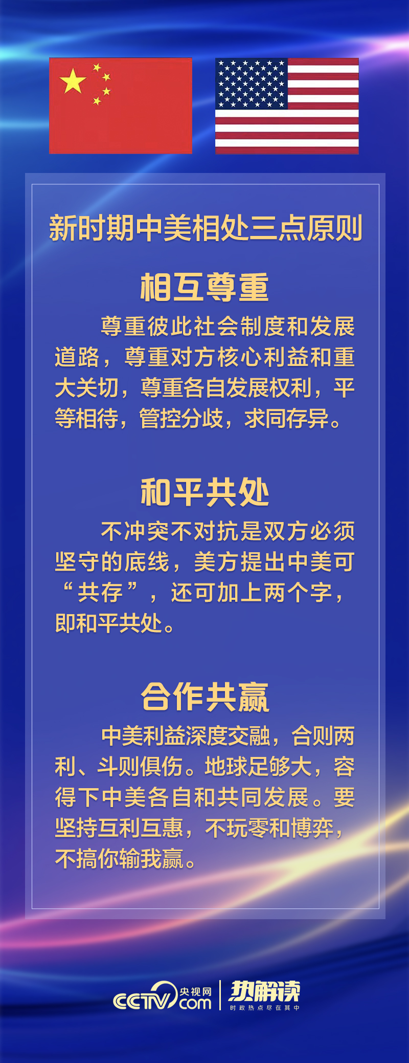 中美關係如何健康發展?習近平主席用12個字指明原則,即相互尊重、和平共處、合作共贏。