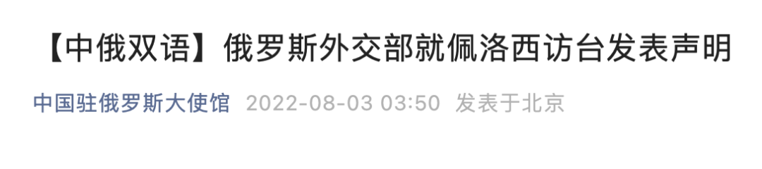 俄羅斯、白俄羅斯外交部就佩洛西訪臺發表聲明,全文如下: