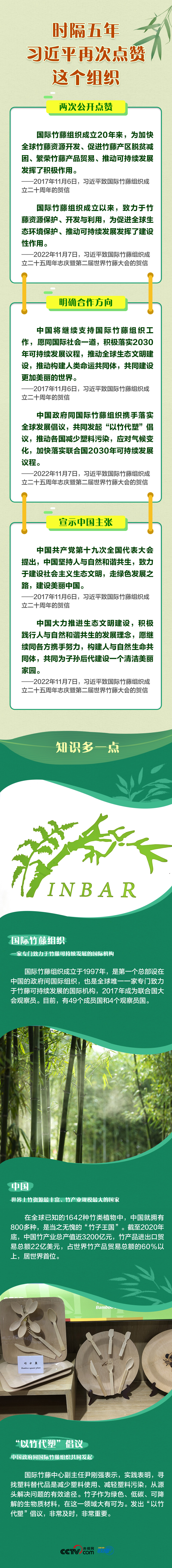 聯播+“國際竹藤組織成立以來,致力于竹藤資源保護、開發與利用,為促進全球生態環境保護、推動可持續發展發揮了建設性作用。”11月7日,國家主席習近平向國際竹藤組織成立二十五周年志慶暨第二屆世界竹藤大會致賀信。