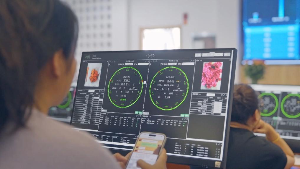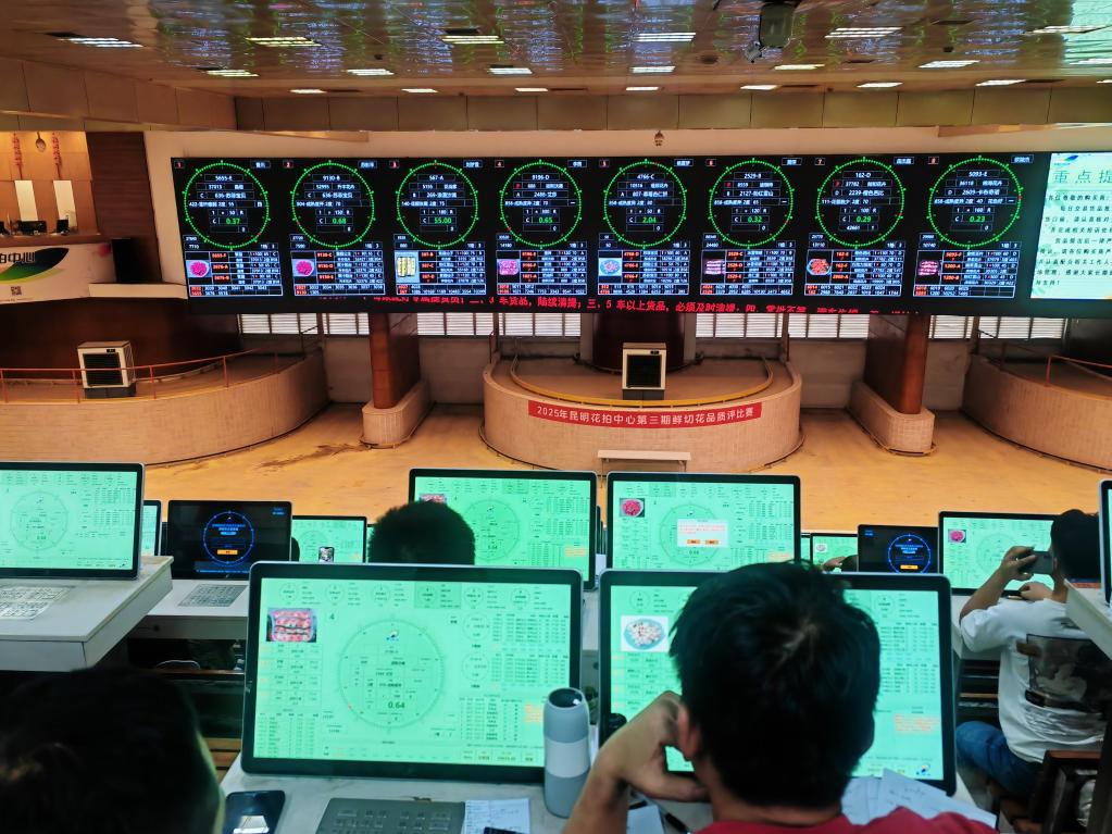 線下市場熱鬧非凡,線上拍賣平臺高效運行,數字化手段正在為花卉流通提供有力支撐。雲南愛必達園藝科技有限公司副總經理徐馨介紹,中心線上的日均交易量大約每天在40萬枝鮮切花,參與交易的供貨商每天大約200戶,線上拍賣的購買商大約180戶。“為保障交易效率和鮮花品質,我們在拍賣前做好物流接收、質檢、定級、數據錄入等各項準備,拍賣結束後,及時完成配貨、打包和發貨,確保每一枝鮮切花以良好的狀態送達客戶手中。”