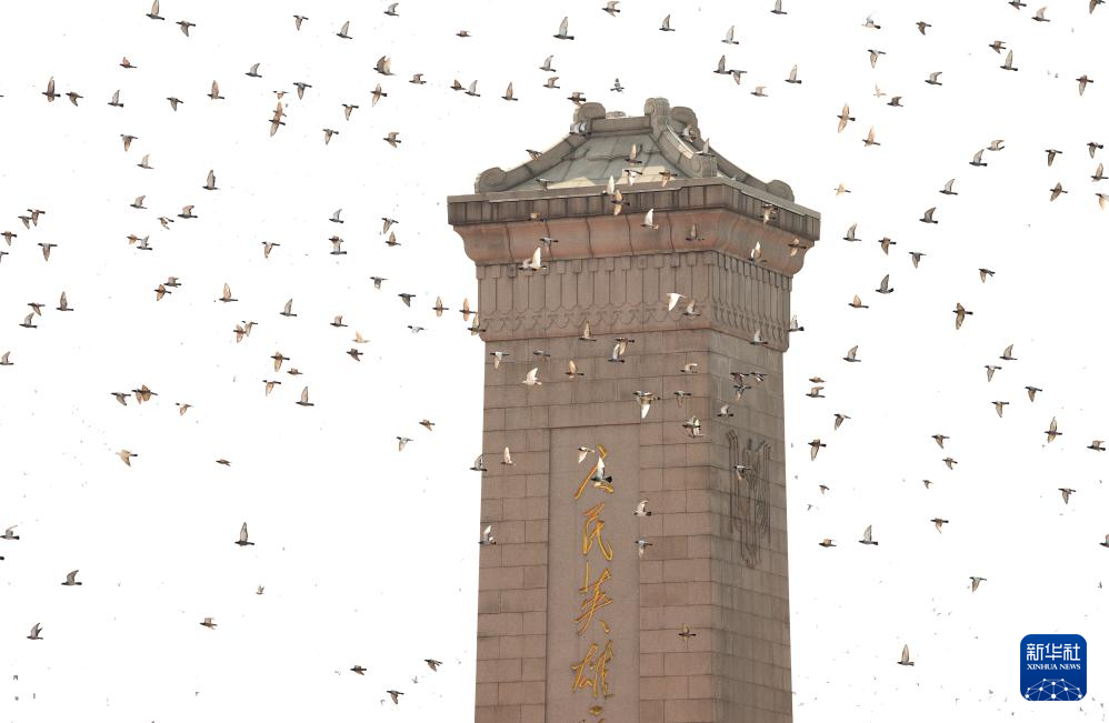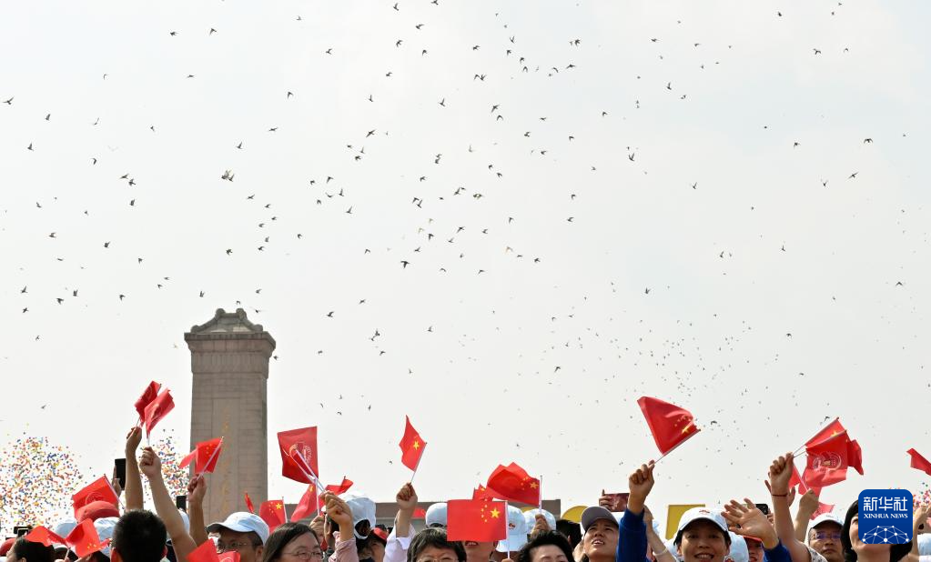 9月3日,紀念中國人民抗日戰爭暨世界反法西斯戰爭勝利80周年大會在北京隆重舉行。這是紀念大會現場放飛鴿子。