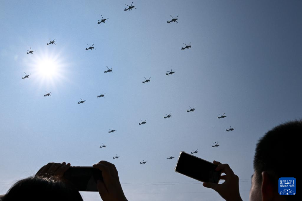 9月3日,紀念中國人民抗日戰爭暨世界反法西斯戰爭勝利80周年大會在北京隆重舉行。這是教練機梯隊接受檢閱。