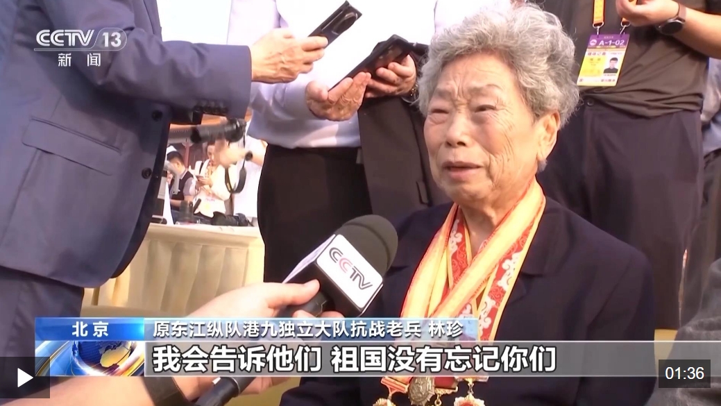 原東江縱隊港九獨立大隊抗戰老兵 林珍:我會告訴他們,祖國沒有忘記你們,永遠都紀念你們為祖國所獻出的生命,你們今天就可以和我們同時享受這種光榮和繁榮富強的盛世。
