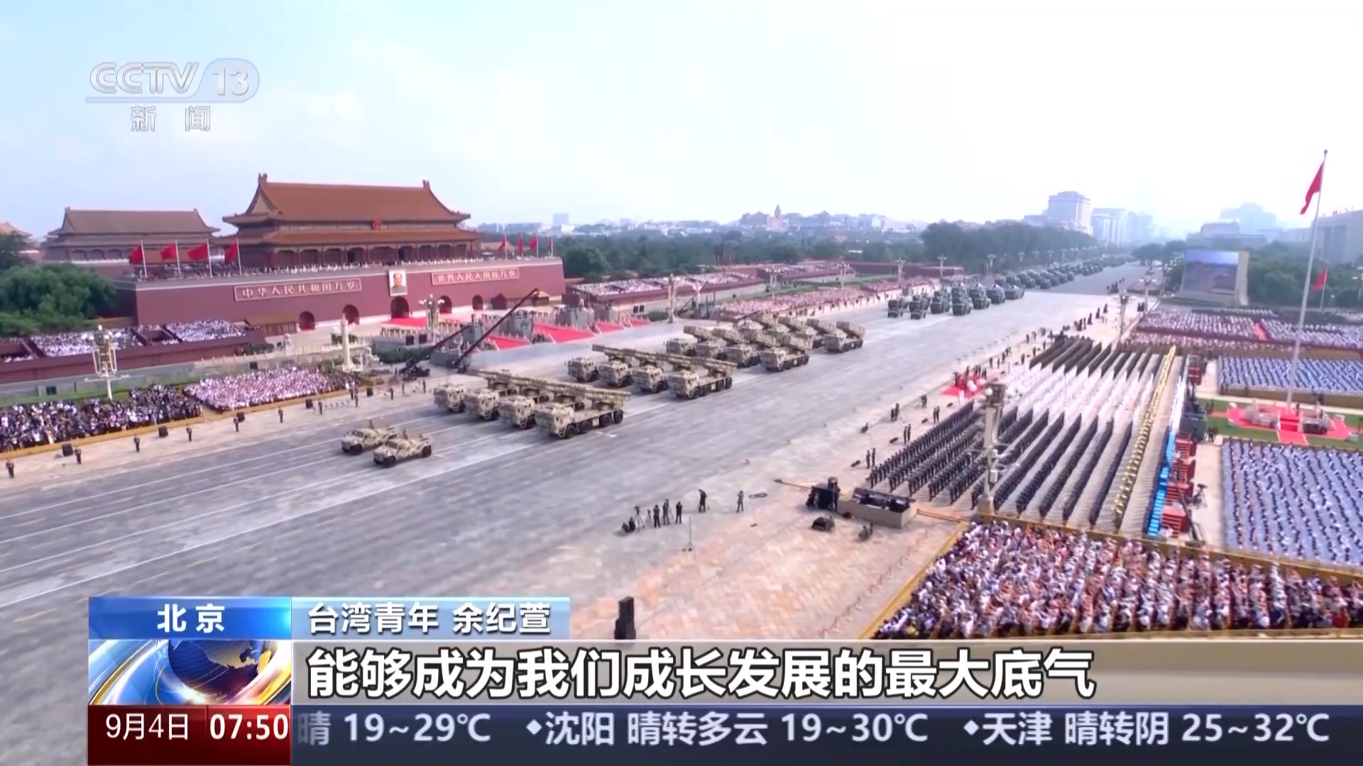 臺灣青年 余紀萱:80年後的今天,我在現場看到了我們的祖國能夠這麼強盛,有這麼多先進的設備,有這麼多“國之重器”,能夠成為我們成長發展的最大底氣,我覺得非常感動。