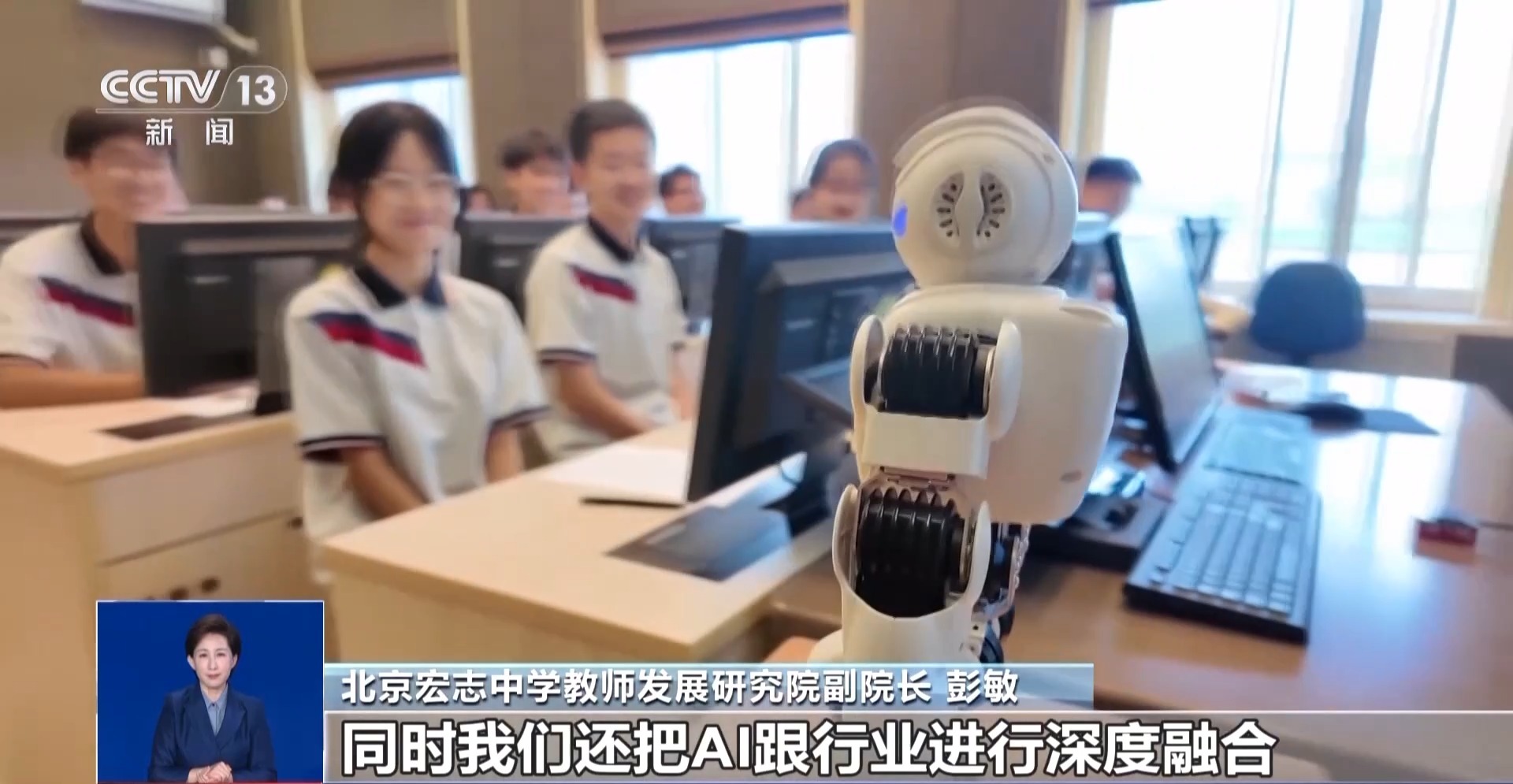 北京市宏志中學教師發展研究院副院長 彭敏:到企業去參觀,還有學科滲透以及數學節、科學科技節等歸到第一層次,主要的目的是帶領學生來認識AI;到了第二個層次,我們開設了像把AI跟學科進行深度融合,同時還把AI跟行業進行深度融合開設一些課程;第三個層次是提高層,是針對學有特長的學生進行培養。