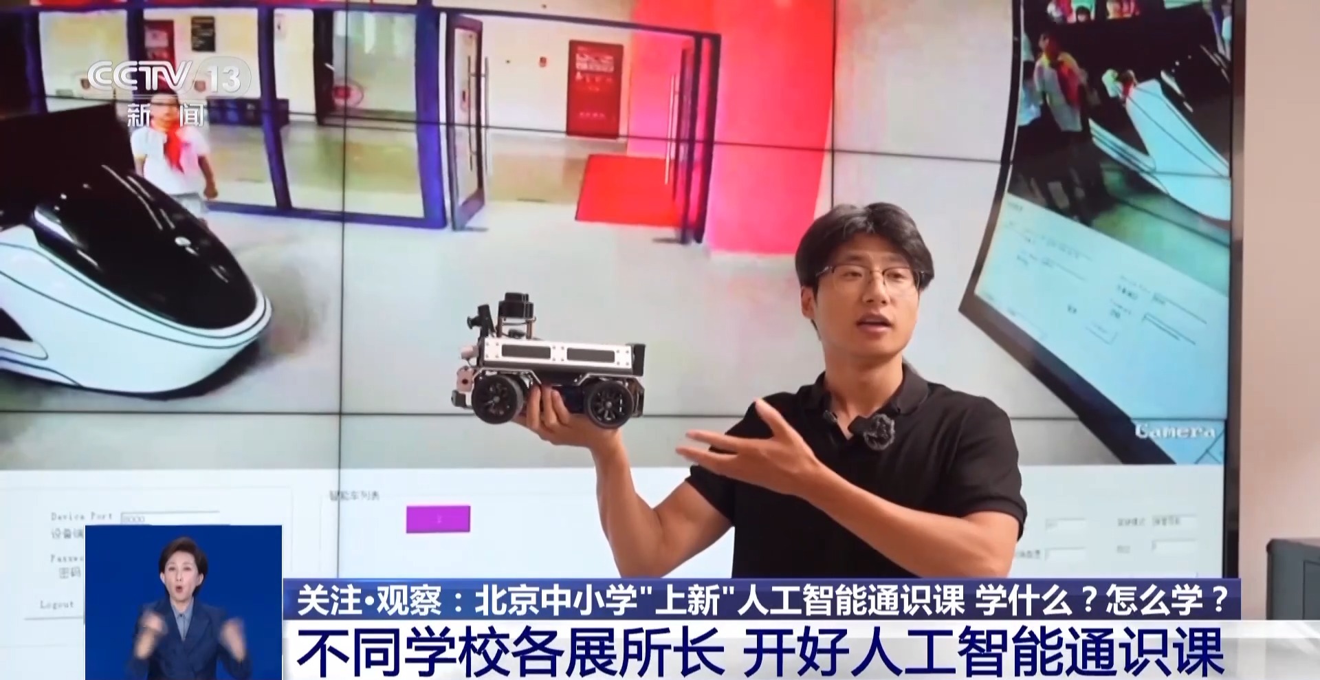 北京市教育委員會副主任 新聞發言人 王攀:面向人人,面向整體,面向實踐,注意提升每一個孩子的人工智能素養,同時也注重場景的開發,開發一係列的適合孩子們探索的場景,讓孩子們去感知和應用。