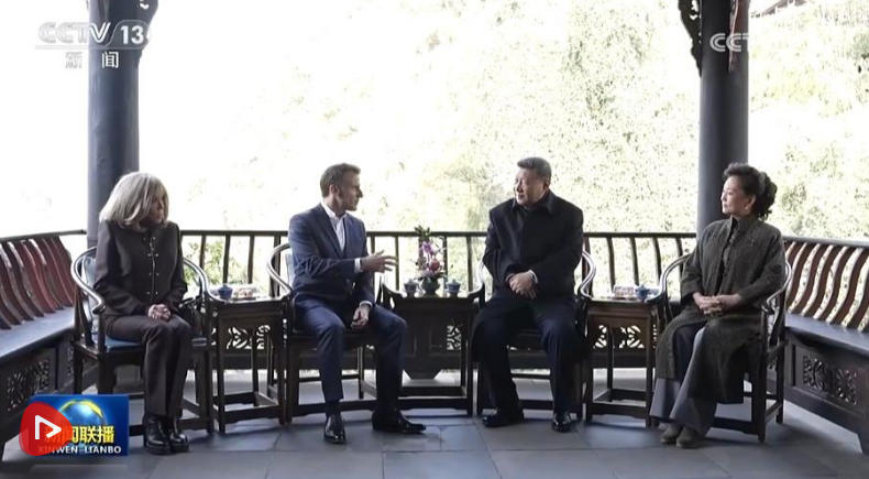 習近平夫婦邀請馬克龍夫婦共進午餐,繼續深入交流。