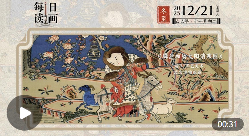 今日冬至,團圓此時。《緙絲加繡九陽消寒圖》定格冬日暖景。讓我們靜待三陽開泰,期盼春暖花開。