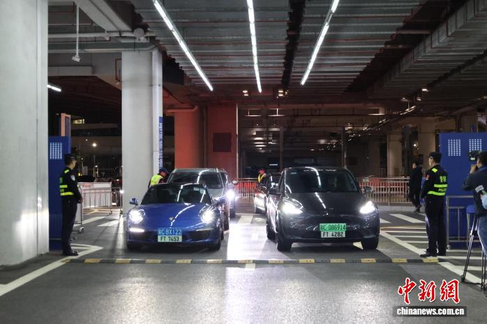 12月23日淩晨,首批“粵車南下”車輛在港珠澳大橋珠海公路口岸等待通關出境前往香港市區。當日,“粵車南下”入境香港市區正式實施,大灣區互聯互通再進一步。 中新社發 黎釗德 攝
