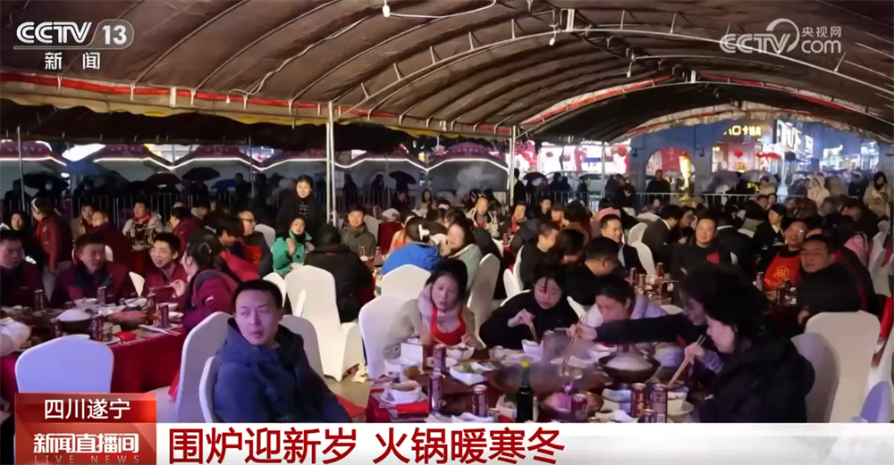 慶元旦、吃火鍋、迎新年。2025年12月31日晚,在四川遂寧市安居區,火鍋美食節熱鬧舉行,大家齊聚一堂,一邊品嘗麻辣鮮香的特色火鍋,一邊欣賞精彩的文藝演出。
