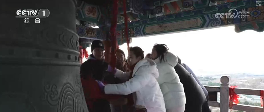 鼓聲暫歇,市民們用力地擺起鐘錘,重重地撞向銅鐘。悠揚的鐘聲在空中久久回蕩,大家載歌載舞,共同歡慶2026年的到來。