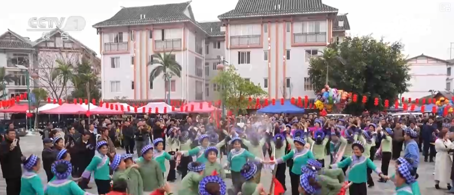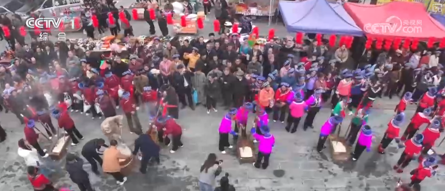 在貴州望謨,各族群眾打起躄粑,跳起歡快的舞蹈,禮讚幸福生活,歡度節日。