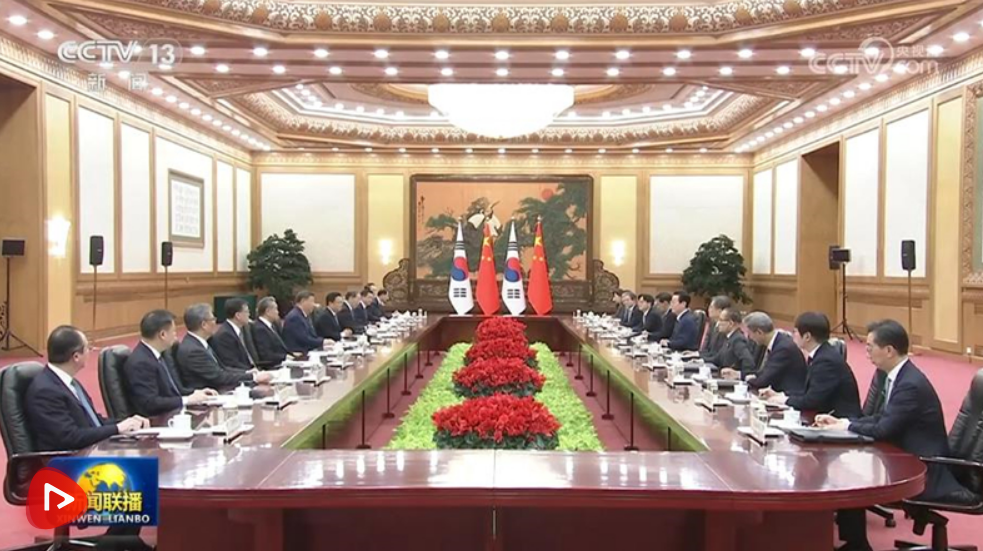 習近平指出,當前世界百年變局加速演進,國際形勢更加變亂交織。中韓在維護地區和平、促進全球發展方面肩負重要責任,有廣泛利益交集,應當堅定站在歷史正確一邊,作出正確戰略選擇。80多年前,中韓兩國付出巨大民族犧牲,贏得抗擊日本軍國主義的勝利。今天更應攜手捍衛二戰勝利成果,守護東北亞和平穩定。作為經濟全球化的受益者,中韓要共同反對保護主義,踐行真正的多邊主義,為推進平等有序的世界多極化、普惠包容的經濟全球化作出貢獻。