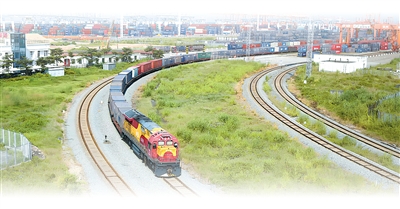 滿載集裝箱的班列駛離廣西欽州鐵路集裝箱中心站。新華社記者 張愛林攝