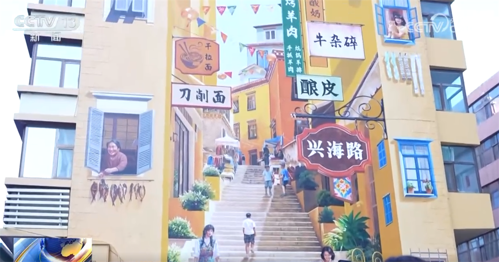 隨著城市更新和文旅融合,在西寧,像興海路這樣的老街被注入了新活力。如今,這條老街在保留老味道的同時,每一家餐飲店都圍繞“特色美食+主題雕塑”做了定制化更新,讓門頭更有辨識度。街區里還打造了創意3D彩繪牆,融入了雪豹、高原花草等元素,讓普通的牆面變成了有趣的“街頭藝術館”,街區還設置了互動打卡站、導覽咨詢等一站式服務設施,成為八方來客的美食打卡點。
