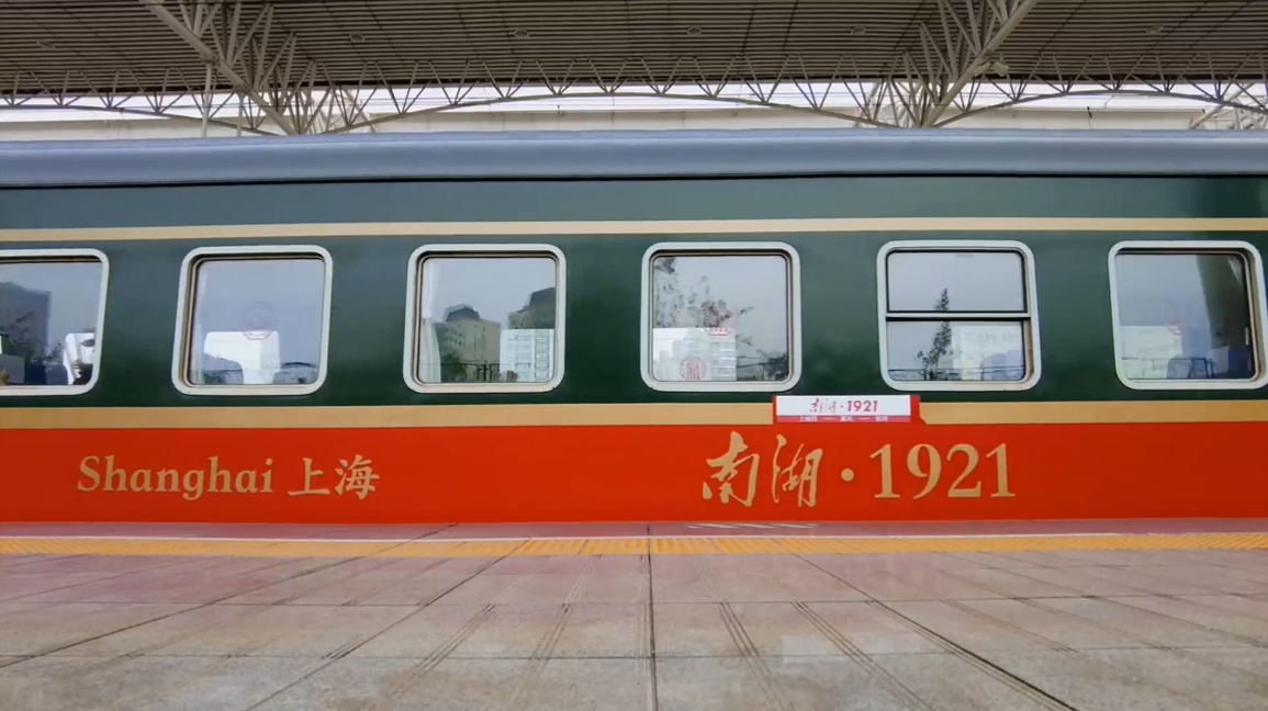 離開紀念館前往上海西站,遊客可搭乘“南湖·1921”紅色旅遊專列,重走代表們當年的路線“轉移”至嘉興。列車採用綠皮車為車底,車身飾以紅、金、綠色涂裝,車廂以木質座椅、老照片、老時刻表等還原上世紀20年代的古樸風格,百年時空在此交錯重疊。