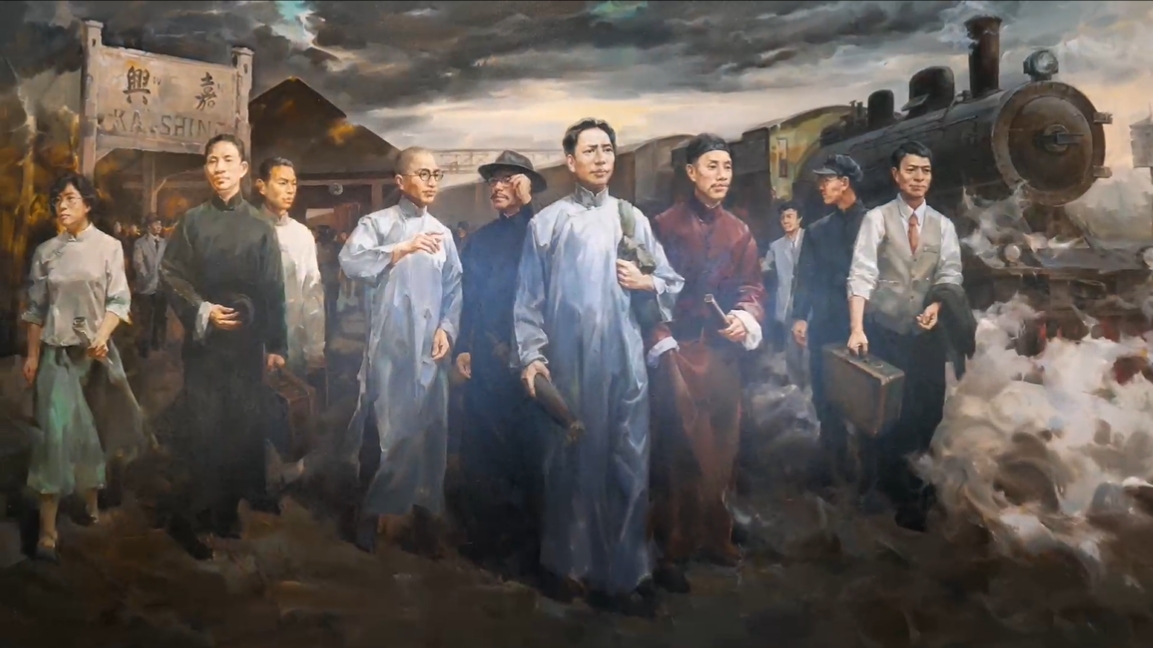 1921年7月23日,中國共產黨第一次全國代表大會在上海開幕,宣告中國共產黨正式成立,後因暗探闖入會場,代表們緊急撤離,乘火車轉移到浙江嘉興南湖的遊船上舉行。