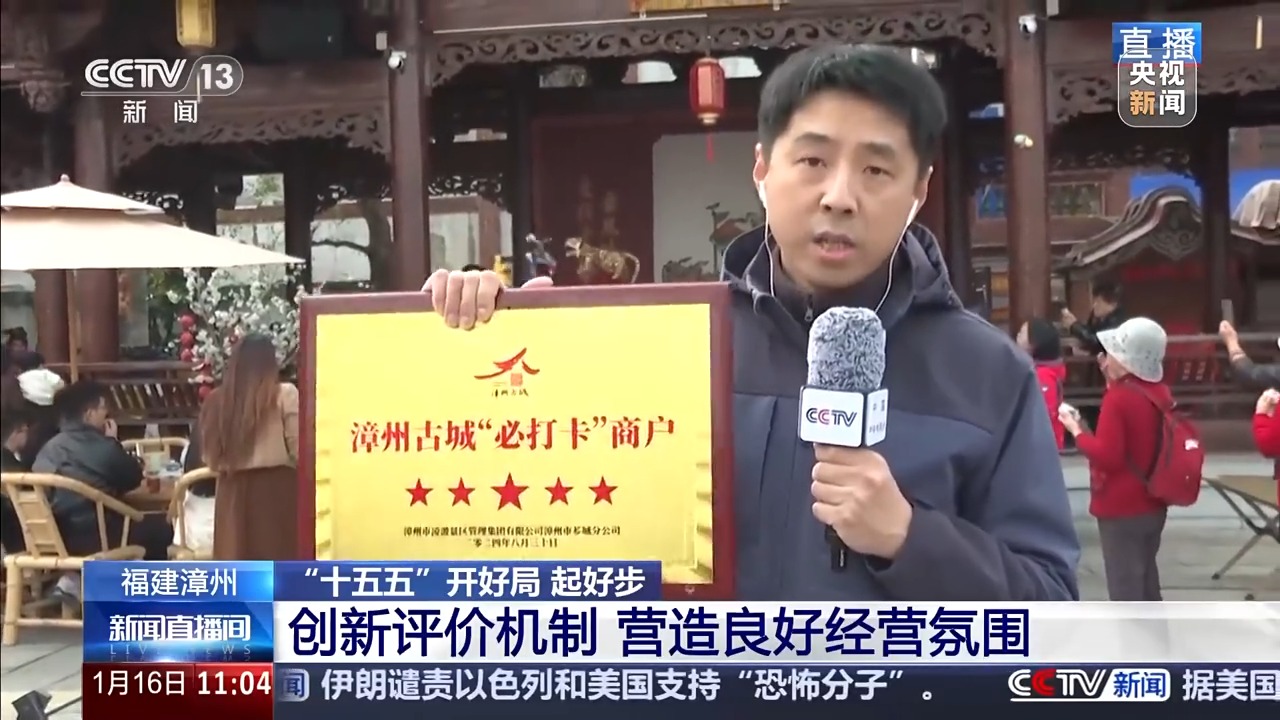 此外,我們還注意到一個細節。這里有一些商家,獲得了這樣一種帶有星級評價的獎牌。這是漳州古城聯合了當地文旅、商務、市場監管等部門共同授予。目前,當地相關部門每兩年都會對古城內的商戶開展文明誠信經營示范評選,經過線上投票、現場考察、線下評分等環節,上榜單位將得到漳州當地有影響力的公眾號、視頻號等的推廣支持,不僅讓精品商鋪能夠出圈,提升古城的遊客流量,也激勵其他商戶,來共同營造良好的經營氛圍。