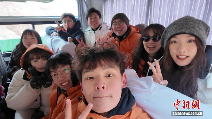 2026年1月24日,全國臺聯第三十二屆臺胞青年冬令營甘肅分營中的兩岸青年在行程中自拍合影。受訪者供圖