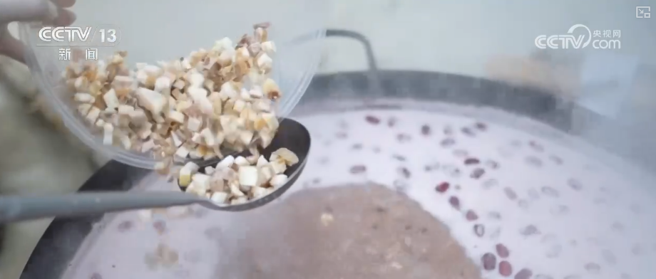 與傳統臘八粥不同的是,當地在制作臘八粥時,還將種植的中藥材桔梗和地方名小吃——片粉加入其中,滿足不同口味的需求。