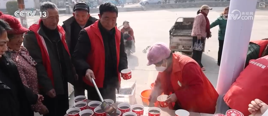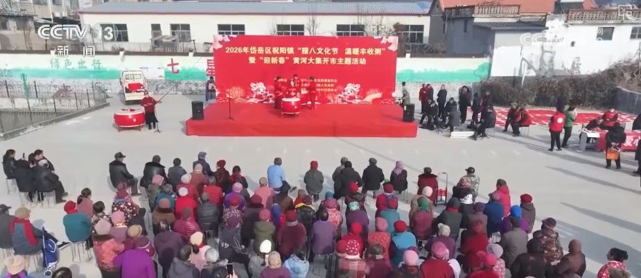 在泰安市岱岳區祝陽鎮,開年的活動豐富多彩,一大早就熱鬧起來。民間戲曲連臺唱、現場寫春聯,充滿喜慶的文化活動,讓人們倣佛置身于過年畫卷之中。在廣場上,志願者支起大鍋,熬制臘八粥香氣四溢。