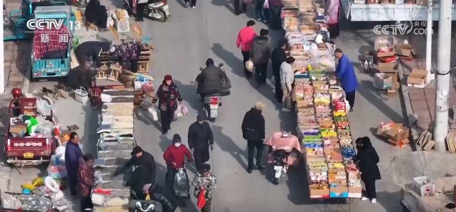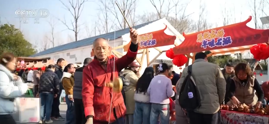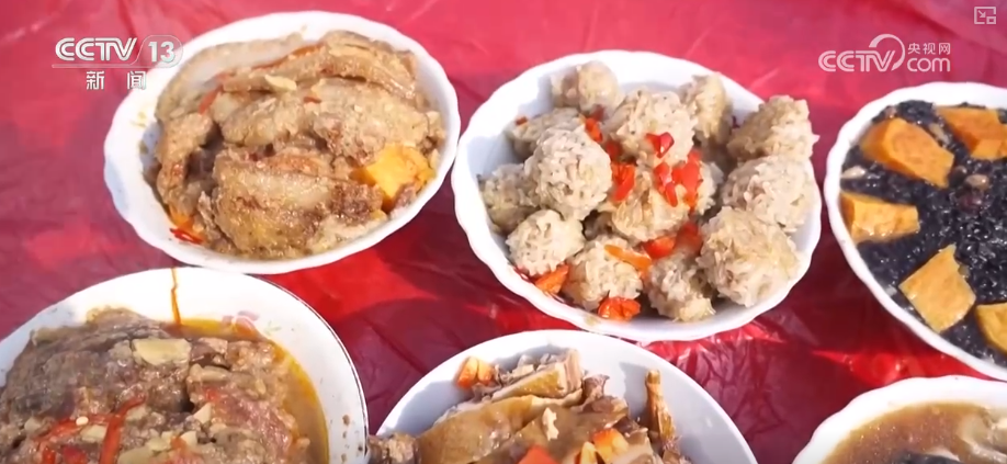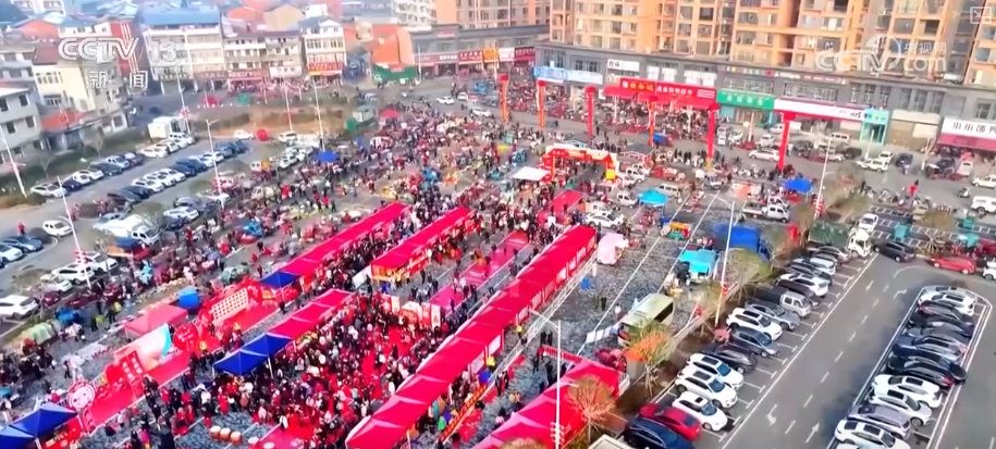 在湖北仙桃古村落,鄉親們圍坐共享傳統臘八席。在隨縣厲山鎮,熱鬧的廟會、年貨市場也紅火開市。