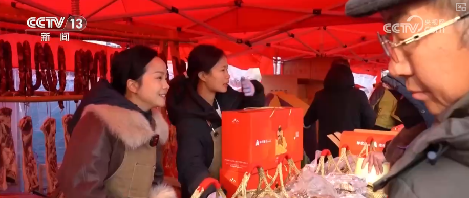 此外,在年貨大集上,牛羊豬雞、新鮮蔬菜等商品,都是農民自產自銷的,吸引著市民來這里置辦年貨,體驗“年味”。