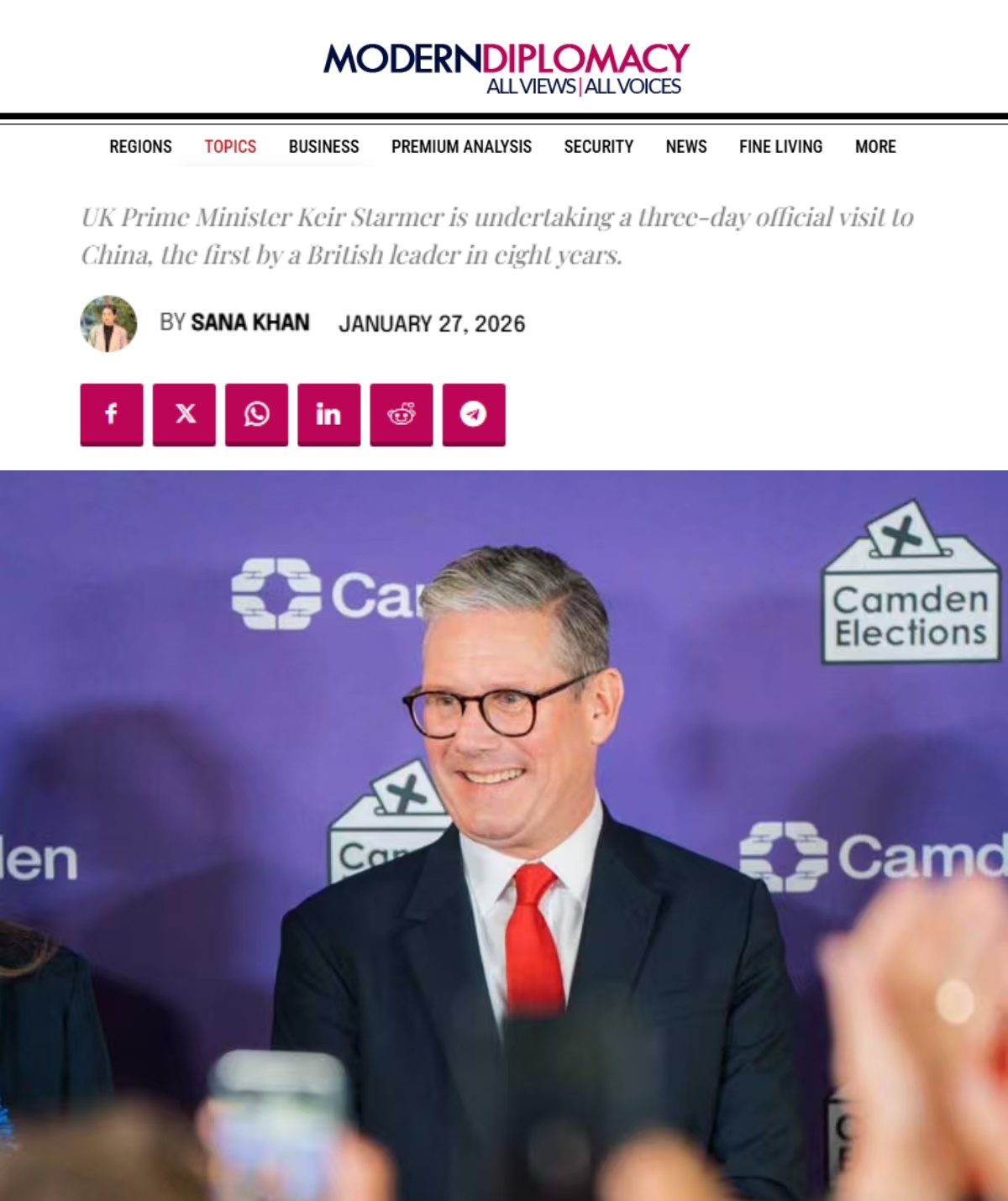 歐洲《現代外交》網站報道稱,斯塔默此行標志著英國外交策略的轉變,倫敦正在根據地緣政治變化重新評估其全球夥伴關係。報道稱,斯塔默將探索與世界第二大經濟體的經濟和貿易合作途徑,旨在吸引投資,擴大英國企業的市場準入,並與中國就氣候變化、人工智能和公共衛生等共同全球關切展開交流。報道還分析稱,此次訪問展示了中等大國如何通過多元化夥伴關係來保護本國利益,以應對國際關係中係統性的不確定性。