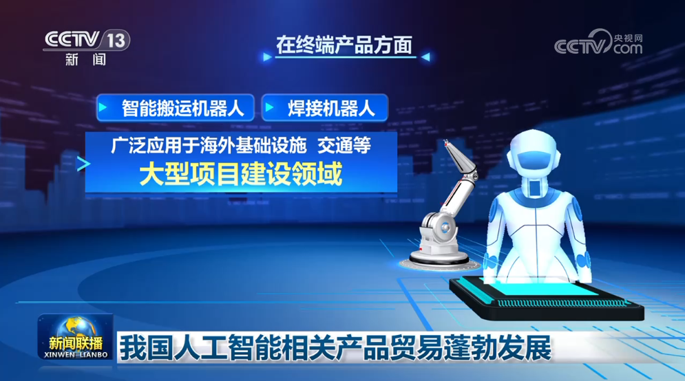 在終端產品領域,我國智能搬運機器人和焊接機器人廣泛應用于海外基礎設施、交通等大型項目建設領域,出口增速均超過60%。
