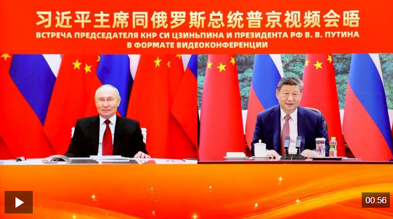 2月4日下午,國家主席習近平在北京人民大會堂同俄羅斯總統普京舉行視頻會晤。