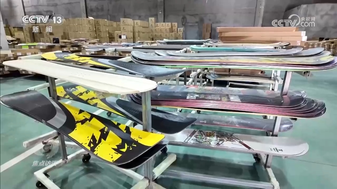 除了大型裝備,一些滑雪裝備也實現了提質升級。在這家企業的展示庫房,記者看到了一款滑雪板,它的外形跟普通滑雪板無異,但是重量卻輕了很多。這款新研發的超輕滑雪板,將原先用的碳纖維改為凱夫拉纖維,重量大大減輕,板面耐磨性也大大提升,還不容易沾雪,目前供不應求。