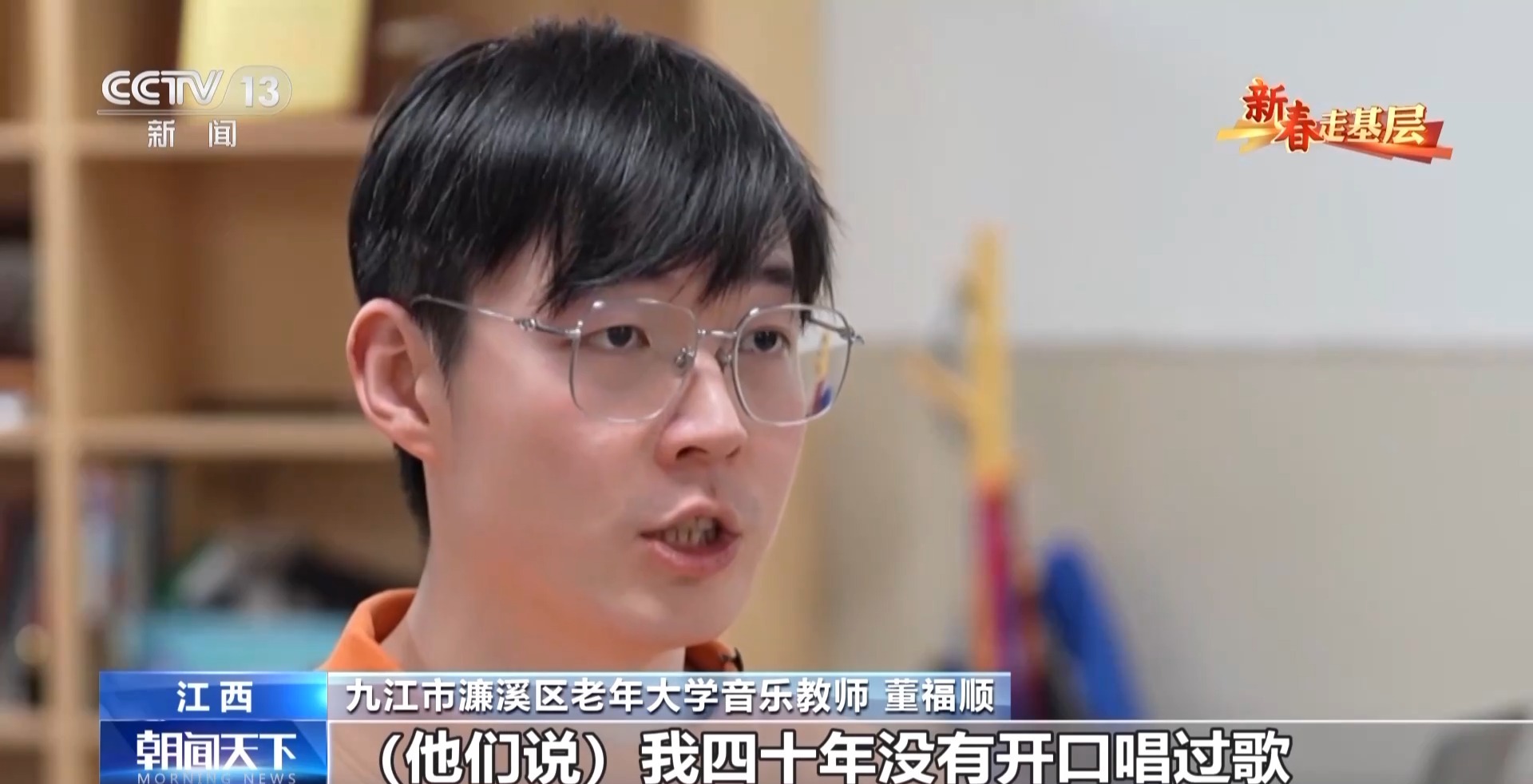 九江市濂溪區老年大學音樂教師 董福順:我去了之後,他們說我四十年沒有開口唱過歌,已經很久很久,他們說都快忘了這首歌的歌詞了,你過來了,讓我想起了它。所以我覺得我又一次被認可了,我也覺得是他們在給我一點能量,當看著他們唱回憶起的這些歌曲的時候,他們坐直了,開始朝我揮手去唱,我覺得這件事做對了。