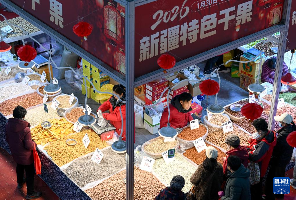 2月5日,在2026銀川新春年貨博覽會現場,市民選購幹果特產。
