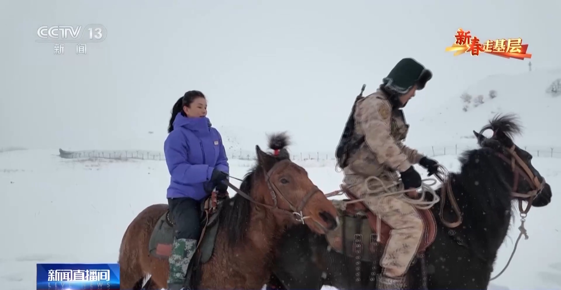 總臺央視記者劉潔:第一次騎上馬背,比想象的要高很多,而且顛簸得厲害,心里很緊張。雙腿要時刻夾緊,雙手要攥韁繩,才能在雪地上保持平穩。僅僅是跟隨隊伍緩行,不一會兒就會覺得腰腿酸軟。可想而知,官兵們長年累月在復雜的地形中騎行巡邏,需要多麼過硬的本領和毅力。