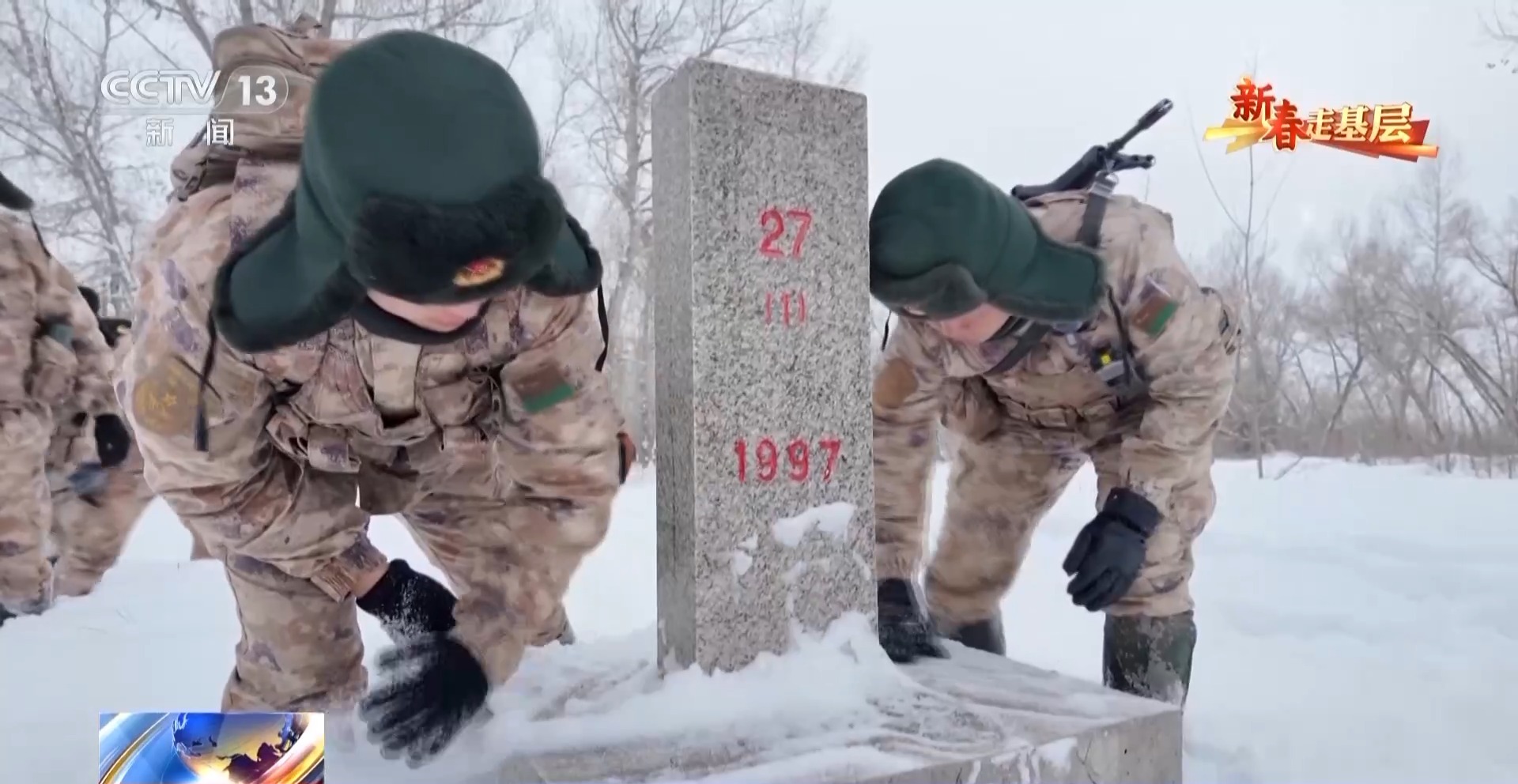 歷經八個小時的風雪跋涉,穿過沙山、沼澤、白樺林,27號界標終于出現在視野中。官兵們下馬,拂去界標上的積雪。新兵李垚臉上最初的緊張已褪去,透出戰士的堅毅。