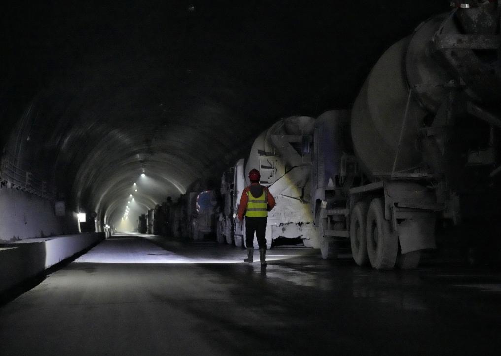工人們在折多山隧道內巡查。新華社記者劉坤 攝