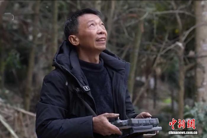 四川北川縣小園村村民楊修林正在飛無人機。 受訪者供圖