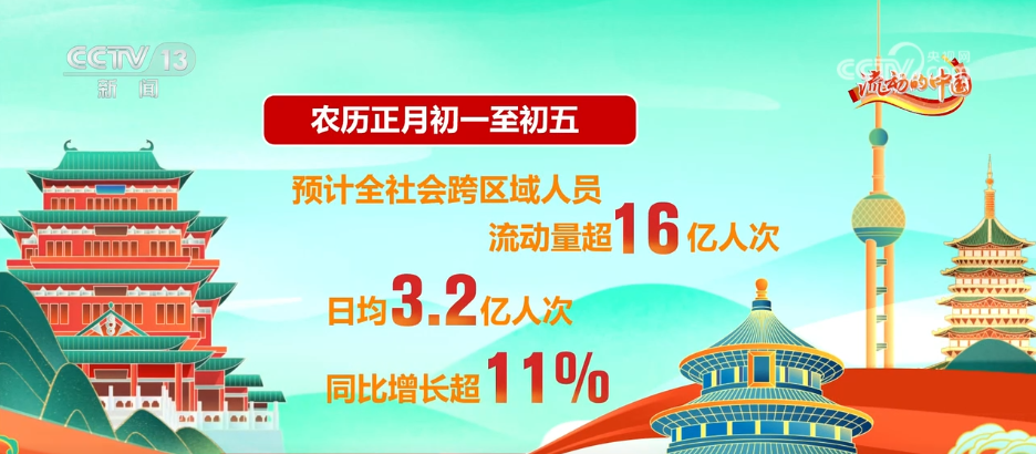 農歷正月初一至初五,預計全社會跨區域人員流動量超16億人次,日均3.2億人次,同比增長超11%。從正月初三開始,連續三日客流規模超過了歷史同期單日峰值。預計22日,跨區域人員流動量將繼續攀升,達到今年春運40天的客流峰值。