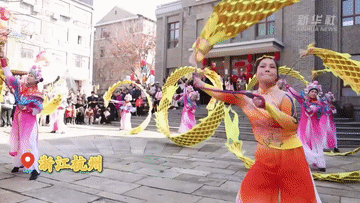 在杭州市余杭區的瓶窯老街,舞龍、花燈、竹馬等輪番上演,與熱鬧的市集一同營造出濃濃年味,吸引大批市民、遊客。
