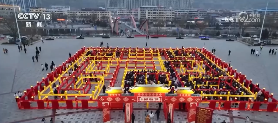 山西太原市婁煩縣的轉九曲,以燈陣布局,因其形如九曲十八彎的黃河而得名,設有狀元門、吉祥門、得勝門、子孫門等九道門。群眾手持彩燈有序穿行,在蜿蜒燈路中祈福納祥。