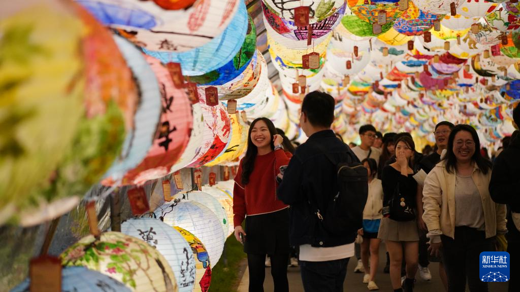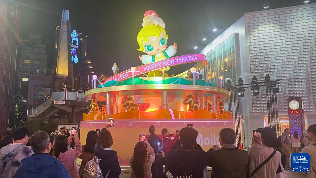 另一展區西門町則攜手大陸品牌“泡泡瑪特”,以6個人氣IP的馬年全新造型為核心,打造五座特色燈組。臺北市民徐小姐手里拿著“LABUBU”造型紅色氣球逛燈會。“這些燈組很可愛,也為西門町商圈增添了新活力。”她說。